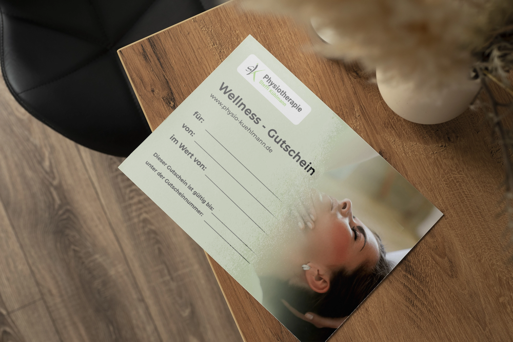 Verschenken Sie Wohlbefinden mit einem individuellen Gutschein für Physiotherapie oder Massage. Wählen Sie Ihren Wunschbetrag flexibel zwischen 20 € und 500 €.